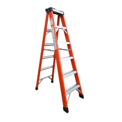 The fiberglass step ladder has wide steps, and you can work directly while standing. It usually has ladder legs on both sides.